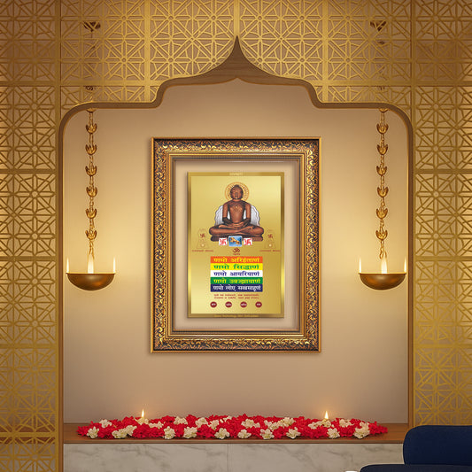 Lord Mahavira with Namokar Mantra | Jain Tirthankara Wall & Tabletop Photo Frame in 24K Gold Plated Foil