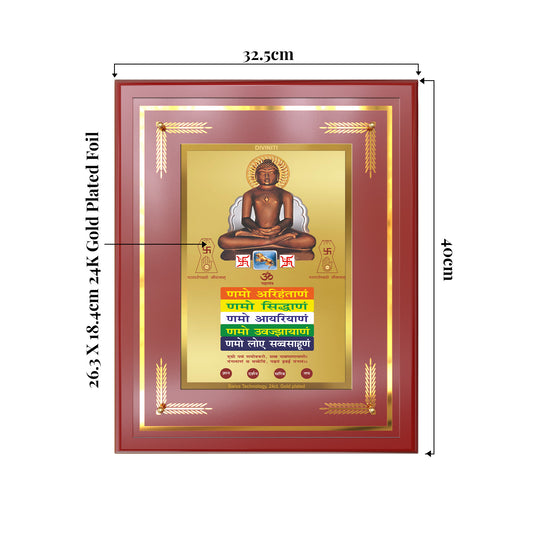Lord Mahavira with Namokar Mantra | Jain Tirthankara Wall Mount Photo Frame in 24K Gold Plated Foil