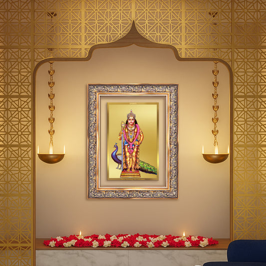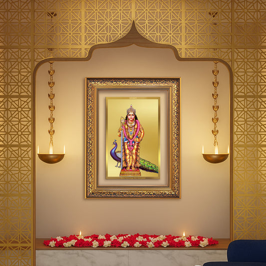Lord Murugan Kartikeya | Divine Warrior God Wall Photo Frame in 24K Gold Plated Foil