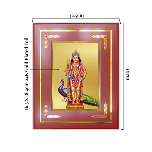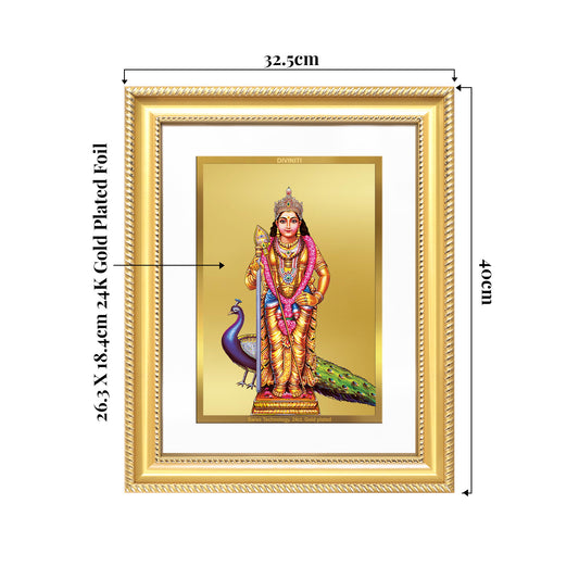Lord Murugan Kartikeya | Divine Warrior God Wall Mount Photo Frame in 24K Gold Plated Foil