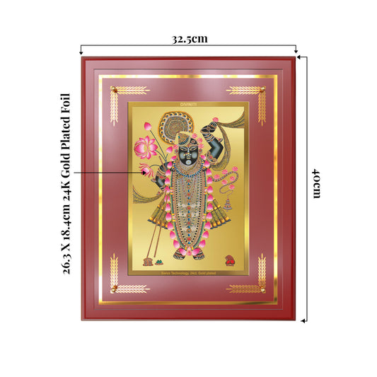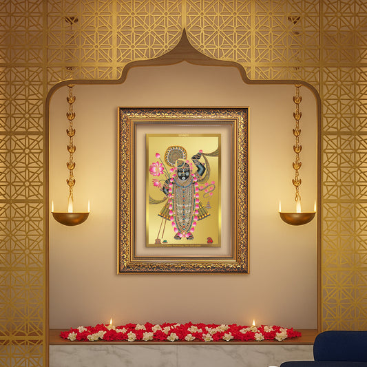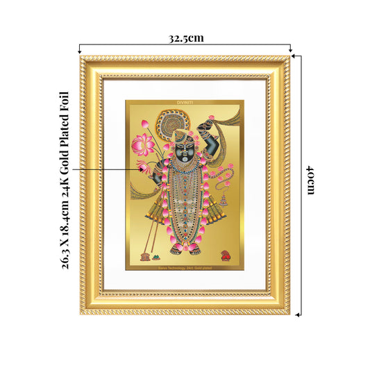 Lord Shrinathji | Divine form of Krishna from Nathdwara Wall Mount Photo Frame in 24K Gold Plated Foil