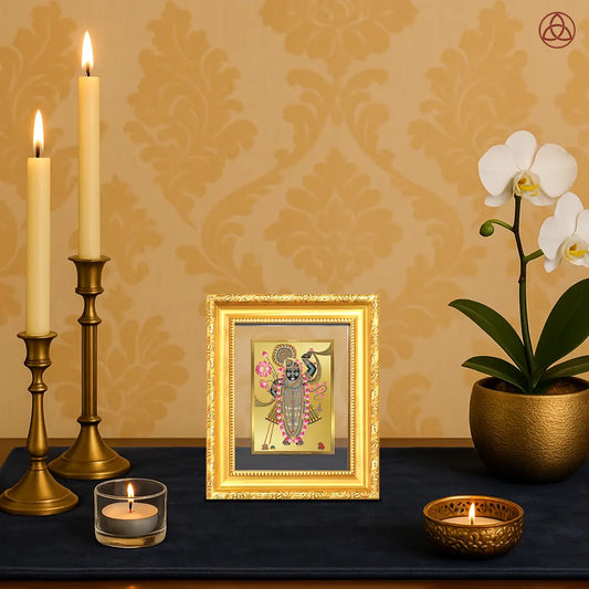 Lord Shrinathji | Divine Form of Krishna from Nathdwara Wall & Tabletop Photo Frame in 24K Gold Plated Foil