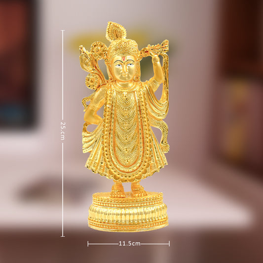 DIVINITI 24K Gold Plated Shrinath Ji Statue For Divine Love and Grace, Positive Energy, Idol For Home, Office, Worship, Luxury Gift (25x11.5 CM)