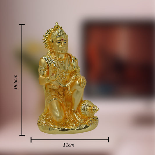 DIVINITI 24K Gold Plated Lord Hanuman Ji Ashirwad Idol Statue For Home Decor, Table Top, Puja, Gift (19.5x11 CM)