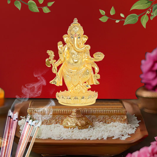 Diviniti 24K Gold Plated Ganesh Ji Idol Statue Exquisite Spiritual Blessing for Home, Office & Pooja Room Gift (19.5x13 CM)