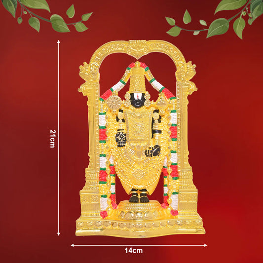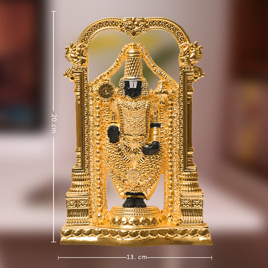 DIVINITI 24K Gold Plated Lord Tirupati Balaji Idol Statue For Positive Energy, Inner Peace, Protection and Prosperity (20X13CM)