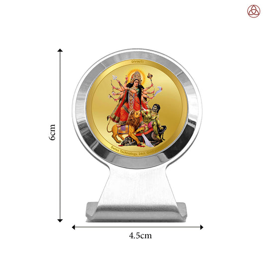Durga Mahishasura | Divine Goddess Durga Slaying Mahishasura Car Dashboard & Tabletop Photo Frame in 24K Gold Plated Foil