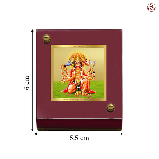 Diviniti 24K Gold Plated Lord Panchmukhi Hanuman Frame For Car Dashboard, Home Decor, Puja (MDF 1B)(6 CM x 5.5 CM)
