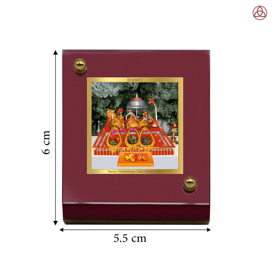 Diviniti 24K Gold Plated Foil Mata Ka Darbar Frame For Car Dashboard, Home Decor, Table Top, Puja and Gift (6 CM x 5.5 CM)