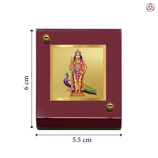Diviniti 24K Gold Plated Lord Murugan / Karthikeya Frame For Car Dashboard, Home Decor, Tabletop and Worship (MDF 1B)(6 x 5.5 CM)