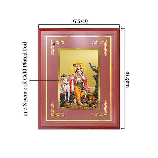 Lord Krishna with Surbhi Cow | Divine Wall and Tabletop Photo Frame in 24K Gold Plated Foil