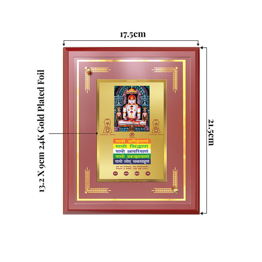 Lord Adinath with Namokar Mantra Tabletop Frame | Adishwara Tirthankara Rishabhanatha Photo Frame in 24K Gold Plated Foil
