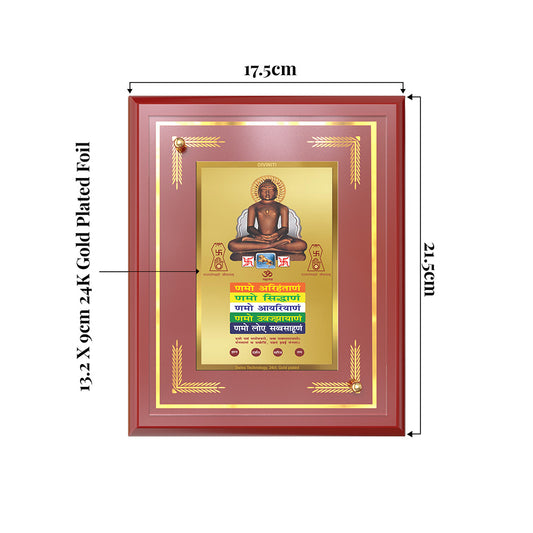 Lord Mahavira with Namokar Mantra | Jain Tirthankara Wall and Tabletop Photo Frame in 24K Gold Plated Foil