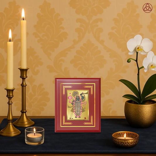 DIVINITI 24K Gold Plated Foil Shrinathji Elegant Wall Photo Frame Idol for Table Top, Home & Office Decor, Puja Room, Gift|MDF Size 1 (16x13.5 CM)