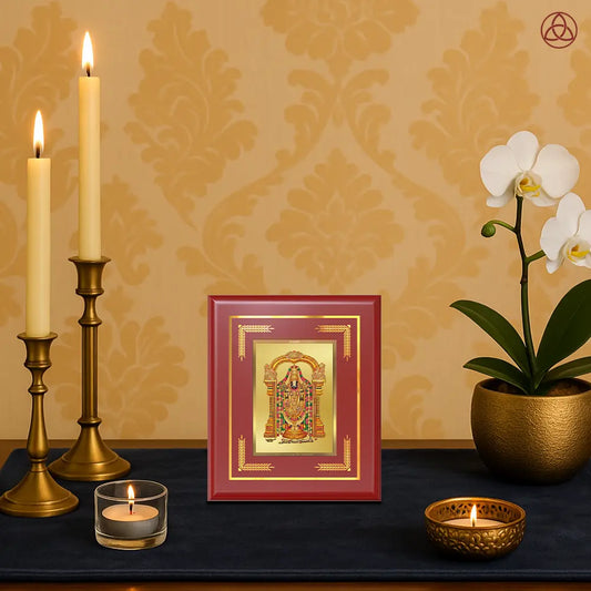 DIVINITI 24K Gold Plated Foil Tirupati Balaji Traditional Wall Photo Frame Idol for Puja Room, Home Decor, Table Top, Luxury Gift|MDF Size 1 (16.7x14.2 CM)
