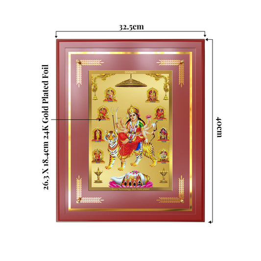 Durga Nav Durga | Goddess Durga in Her Nine Divine forms Wall Mount Photo Frame in 24K Gold Plated Foil