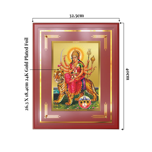 Durga Sherawali Mata with Pind | Divine Wall Mount Photo Frame in 24K Gold Plated Foil