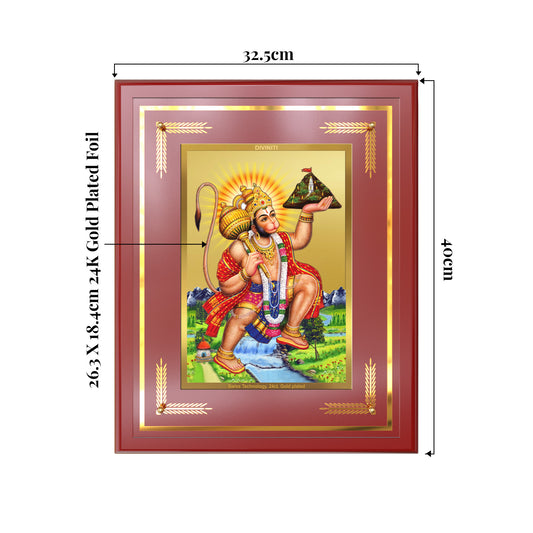 Hanuman Carrying Sanjeevani Mountain | Lord Hanuman Wall Mount Photo Frame in 24K Gold Plated Foil