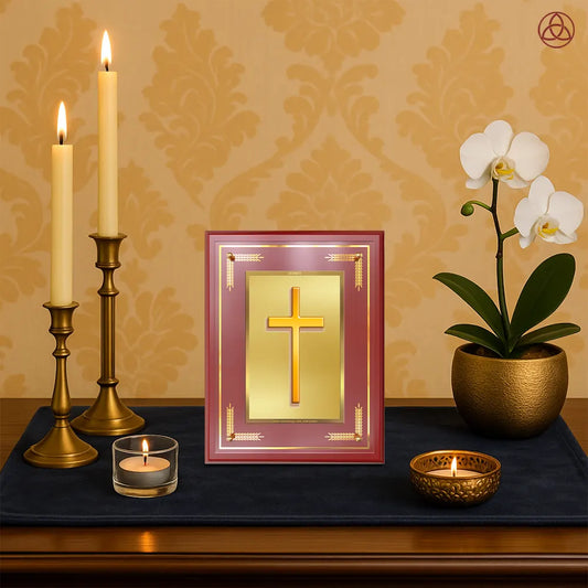 Holy Cross | Sacred Christian Cross Wall & Tabletop Photo Frame in 24K Gold Plated Foil