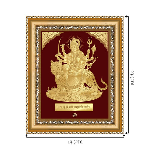 Durga-Sherawali Mata with Pind | Goddess of Power & Protection & Gold on Gold Wall Hanging Frame in 24K Gold Plated Foil