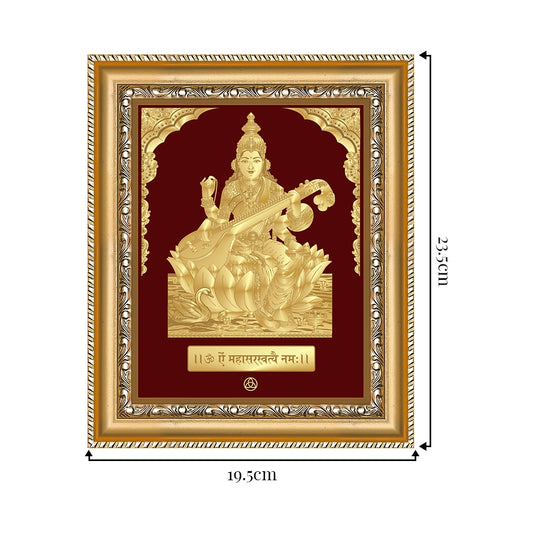 Goddess Saraswati | Divine Mother of Wisdom & Arts Gold on Gold Wall Hanging Frame in 24K Gold Plated Foil