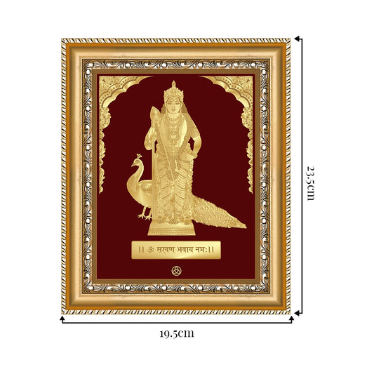 Lord Murugan | Divine Warrior God Gold on Gold Wall Hanging Frame in 24K Gold Plated Foil