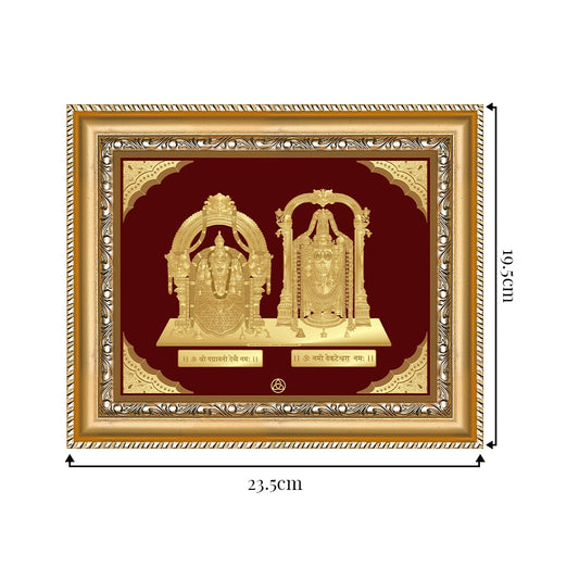 Lord Venkateswara Tirupati Balaji & Goddess Padmavati | Divine Couple Gold on Gold Wall Hanging Frame in 24K Gold Plated Foil