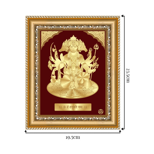 Panchmukhi Hanuman | Five-Faced Hanuman Gold on Gold Wall Hanging Frame in 24K Gold Plated Foil