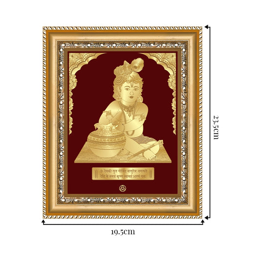 Makkan Bal Gopal |Baby Krishna | Devakinandana For Gold on Gold Wall Hanging Frame in 24K Gold Plated Foil
