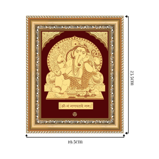 Ganesha with Throne | Lord Ganpati Gold on Gold Wall Hanging Frame in 24K Gold Plated Foil