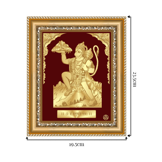 Hanuman Carrying Sanjeevani Mountain | Lord Hanuman Gold on Gold Wall Hanging Frame in 24K Gold Plated Foil Debobrato