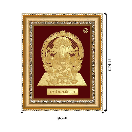 Paunchmukhi Ganesha | Lord Ganpati Gold on Gold Wall Hanging Frame in 24K Gold Plated Foil