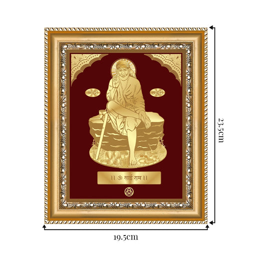 Sai Baba of Shirdi | Saint of Faith & Compassion Gold on Gold Wall Hanging Frame in 24K Gold Plated Foil