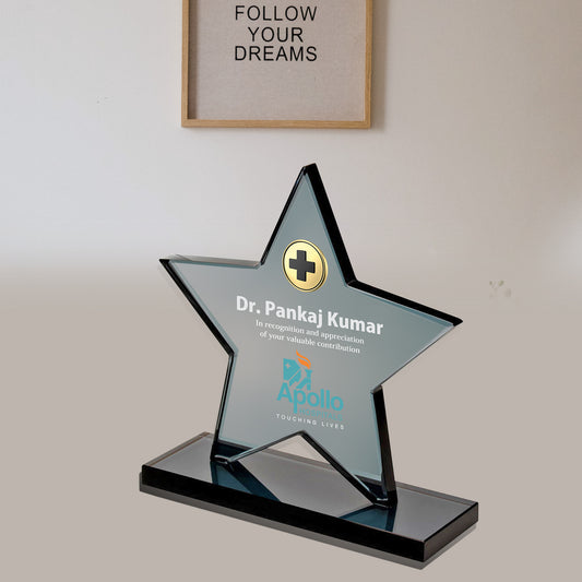 Customized Base Acrylic Trophy with Matter Printed For Corporate Gifting