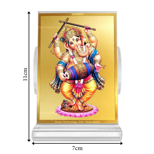 Dancing Ganesha | Divine Lord Ganesha Car Dashboard & Tabletop Photo Frame in 24K Gold Plated Foil