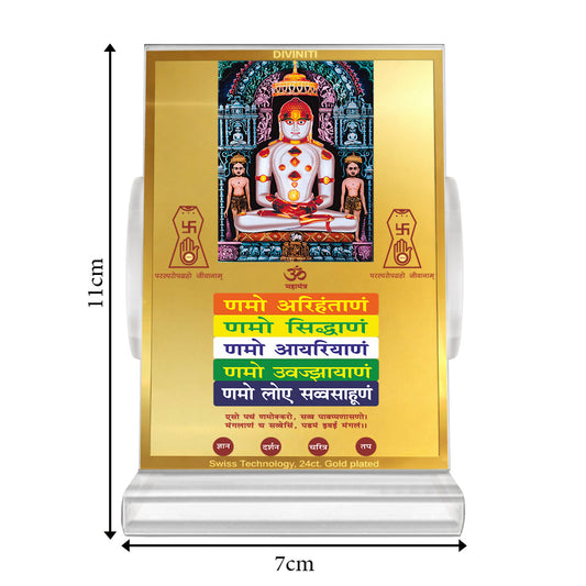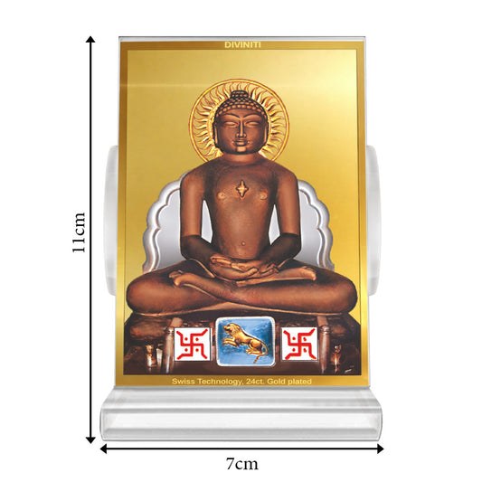 Adinath with Namokar Mantra | Divine Jain Tirthankara Car Dashboard & Tabletop Photo Frame in 24K Gold Plated Foil
