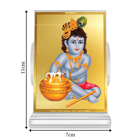 Makkan Gopal | Divine Lord Krishna Car Dashboard & Tabletop Photo Frame in 24K Gold Plated Foil