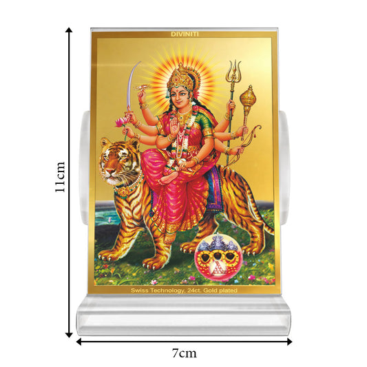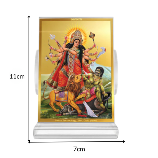 Durga Mata | Divine Goddess Durga Car Dashboard & Tabletop Photo Frame in 24K Gold Plated Foil