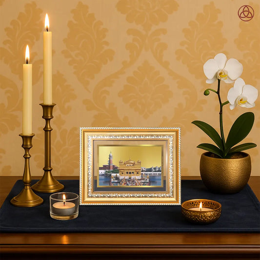 Sachkhand Shri Darbar Sahib -Golden Temple | Sacred Sikh Shrine Wall & Tabletop Photo Frame in 24K Gold Plated Foil