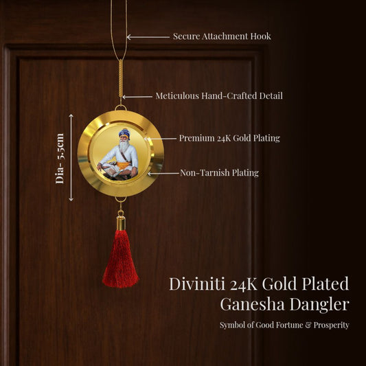 Diviniti 24K Gold Plated Double-Sided Baba Deep Singh & Golden Temple Car Dangler (5.5 cm) | Divine Hanging Car Decor for Protection, Positive Energy & Spiritual Blessings