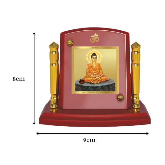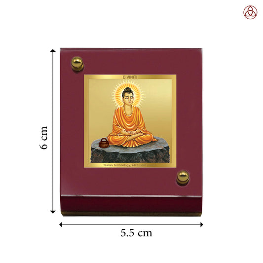 Diviniti 24K Gold Plated Gautam Buddha Acrylic Frame for Car Dashboard, Home Decor, Tabletop, Puja Room, Festival Gift ACF3A (5.8x4.8 CM)