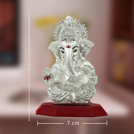 Diviniti 999 Silver Plated Lord Ganesha Statue Idol For Workshop, Office Desk, Home Decor Showpiece, Luxury Gift(10x7 CM)