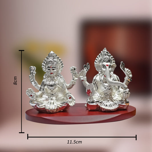 DIVINITI 999 Silver Plated Goddess Lakshmi and Lord Ganesha Statue Idol For Home & Office Decor, Car Dashboard, Puja Room, Gift (8x11.5 CM)