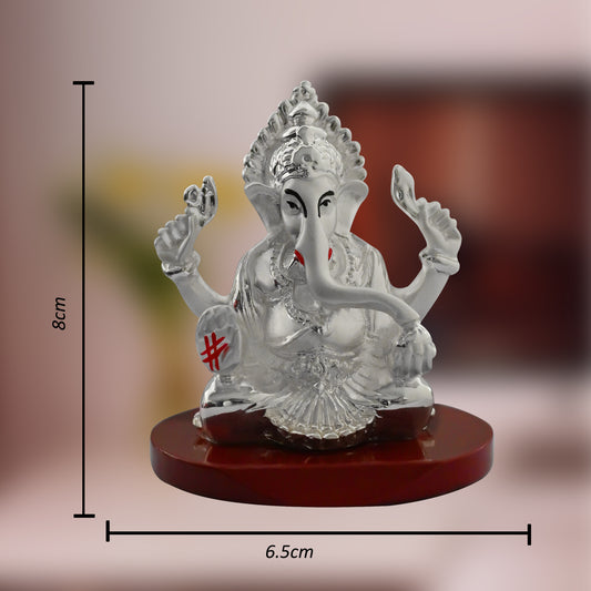 Diviniti 999 Silver Plated Four Hand Lord Ganesha Statue Idol For Car Dashboard, Home Decor, Tabletop, Puja Room and Luxury Gift (7.5x6 CM)