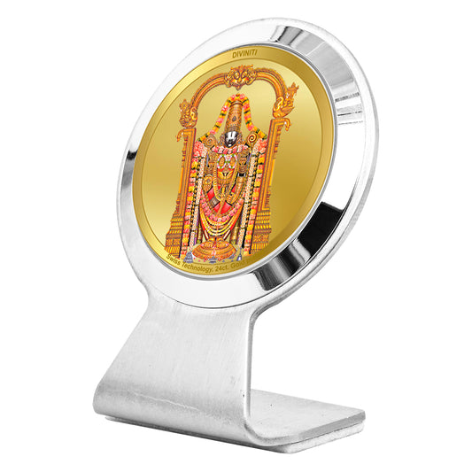 Diviniti 24K Gold Plated Tirupati Balaji Frame for Car Dashboard, Home Decor, Worship, Tabletop & Festival Gift MCF1CR (6.2x4.5 CM)