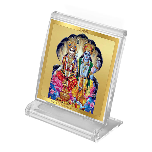 Diviniti 24K Gold Plated Vishnu Laxmi Acrylic Frame for Car Dashboard, Home Decor, Tabletop, Puja Room, Festival Gift ACF3A (5.8x4.8 CM)