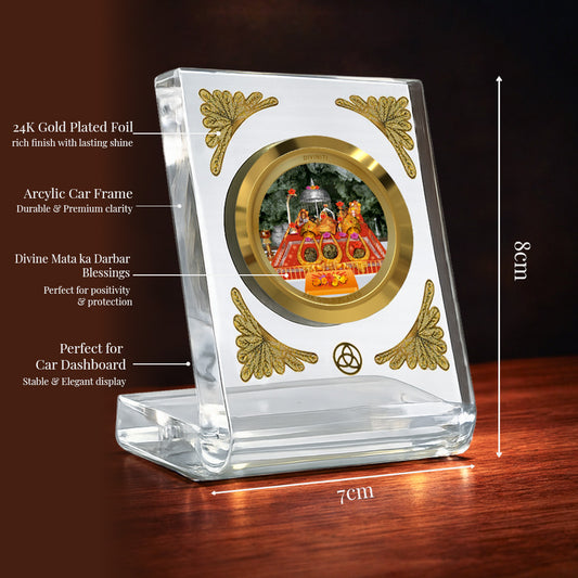 Diviniti 24K Gold Plated Mata Ka Darbar Acrylic Car Dashboard Frame | Durga Darbar for Car, Home Décor, Tabletop & Puja Room | Blessings of Power, Protection & Prosperity (ACF1CH)