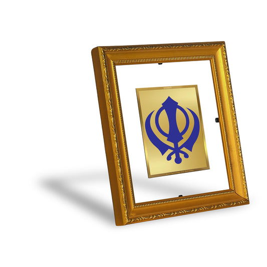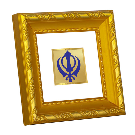 DIVINITI 24K Gold Plated Foil Khanda Sahib Photo Frame for Living Room Decor, Worship, Gift DG 103 Size 1 (15.3x14.9 CM)