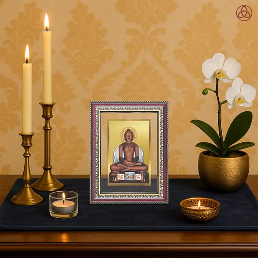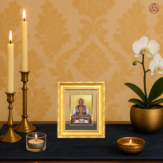 Lord Mahavira | Jain Tirthankara Wall & Tabletop Photo Frame in 24K Gold Plated Foil