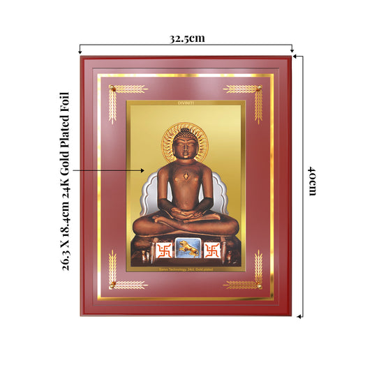 Lord Mahavira | Jain Tirthankara Wall Mount Photo Frame in 24K Gold Plated Foil
